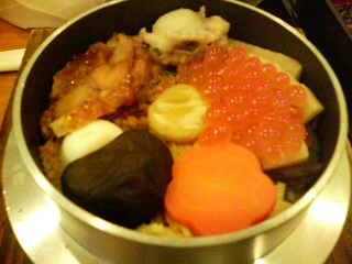 和食食べたい!つったらおいしい釜飯をごちそうしてくれたよ!ここのだし汁ついてて、そのまま食べるもよし、薬味入れるもよし、お茶漬けにするもよしでとてもおいしかった!和食万歳!日本万歳!!