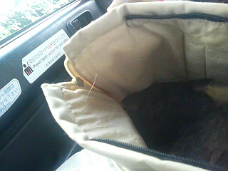すもはキャリーバックに入れると最初は不満そうだけど、次第に丸くなっておとなしくなるの。恐いのかな?すぐおうち着くよ~。