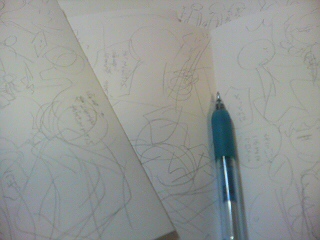 ちなみに、比べるに値しないんですが、私はネームはもちろん、下書きも解読不能です。線が多すぎる。これ厄介なんですよね、何かいてもペン入れるまで汚いの。だからスケブとかもヤバイよ。迷いがない線を描けるようになりたい。