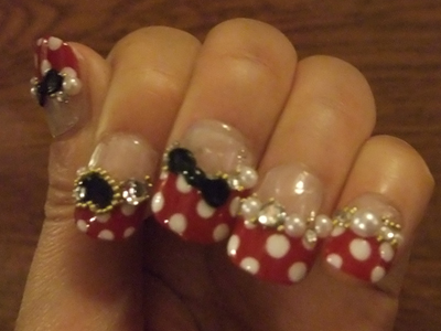 TDL用ネイル。ミニーちゃん風。