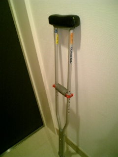 歩くのはちょっと厳しいので、松葉杖借りてきた。うーん、大げさすぎた?