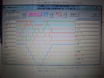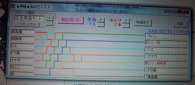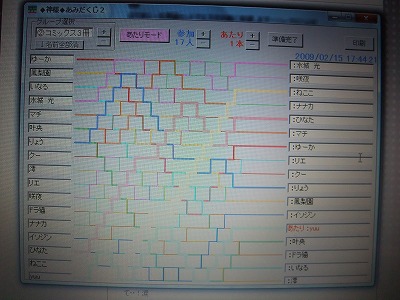 抽選方法は「神様あみだくじ」というフリーソフトにて。