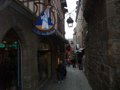 中は小さいけどお土産が売ってる。モンサンの彫刻入りコインとか蝋燭とか。